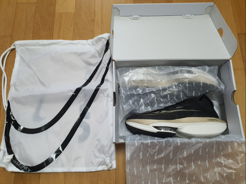 일단 알파플라이2가 택배로 도착했을 때 빨리 뛰고 싶은 마음 뿐이었지요. 신을 때 확실히 입구가 좁아서 발을 넣기가 불편하긴 했어요. 그런데 아치에 닿는 부분이 생각보다 불룩하게 느껴지는거지 뭐에요.
