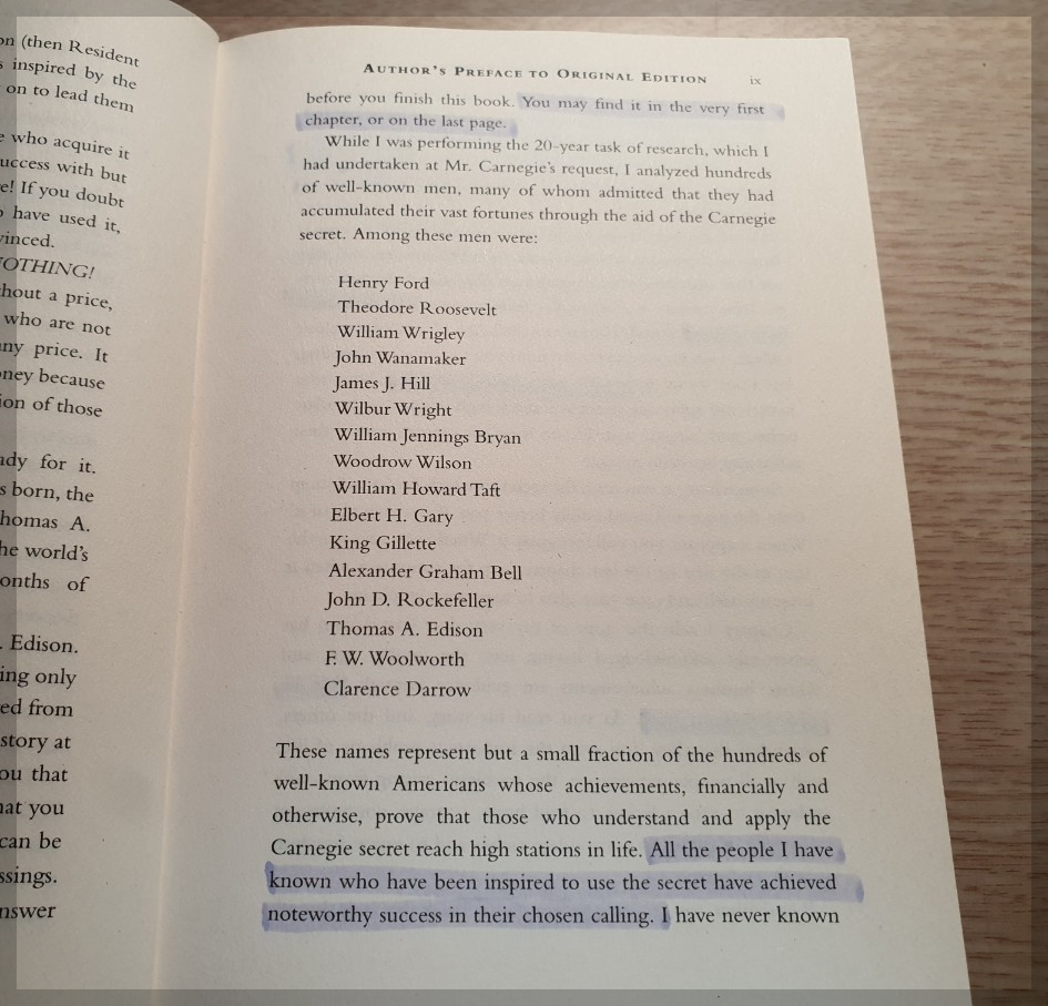 저자 나폴레옹 힐(Napoleon Hill)은 20여년 동안 연구를 통해 막대한 부를 창출했던 저명한 사람들을 찾아가 인터뷰를 하거나 연구했습니다. 책의 서문에 소개된 사람들의 명단입니다.