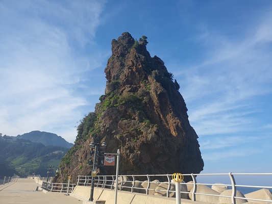 👉 독도로 갈 수 있는 저동항 일대에 있는 바위에요. 저동항 방파제에 맞붙어 있고 저동항의 상징이라 하네요. 원래 바위섬이었으나 방파제 공사를 하면서 바로 앞에서 볼 수 있도록 되었지요. 신년 아침에 일출을 보기 위해 많은 사람들이 모인다고 하네요. 전설이 있는데 들어보실래요?