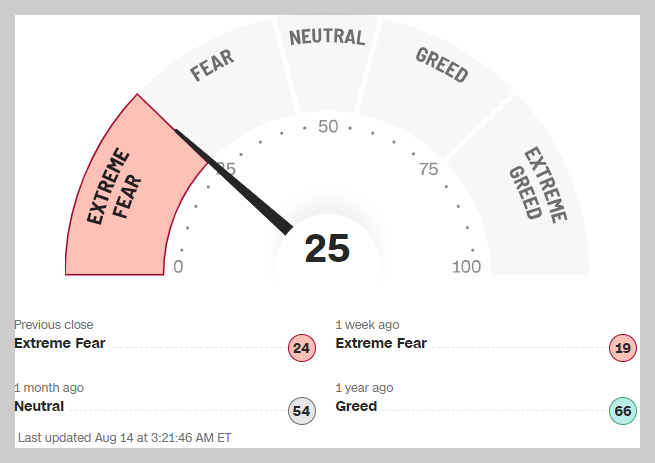 7월 좋은 흐름을 보였던 증시는 탐욕구간이었다가 8월 현재 극도의 공포구간으로 바뀌었습니다.