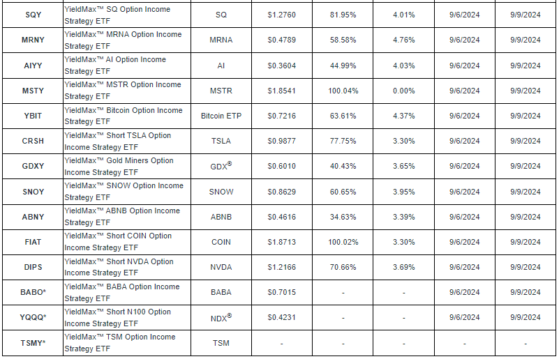 9월 일드맥스(YieldMax) ETF 배당(분배금)이 발표되었어요.