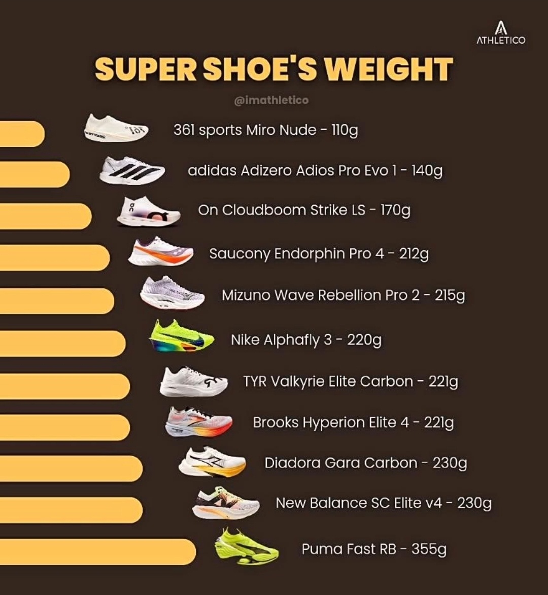 - 정사이즈 : 나이키 알파플라이3, 서코니 엔돌핀 프로4, 서코니 엔돌핀 엘리트2, 아식스 메타스피드, 호카 씨엘로 X1, 클라우드 붐 스트라이크