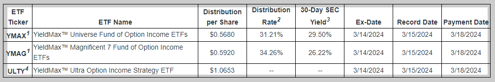 2024년 1월에 YMAX와 YMAG가 출시된 이래 2월에 첫 배당을 주었고 3월 두 번째 배당이 발표되었습니다.