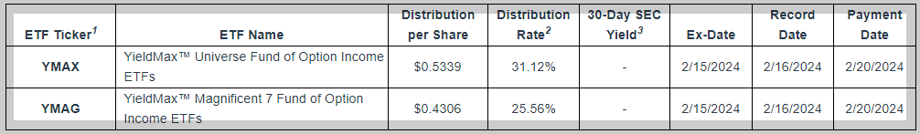 2024년 2월 TSLY, CONY 등 YieldMax ETF 배당(분배금) 발표