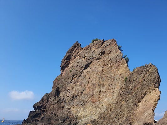 👉 울릉도 순환도로를 따라 달리다 보면 통구미항 근처에 거북바위가 솟아있지요. 거북이 모양을 닮았나요? 단연코 사람들이 많이 몰려서 사진을 찍고 있어서 사람 없는 본래의 사진을 순간 포착했답니다. 통구미(桶龜尾)는 양쪽으로 산이 높이 솟아있고 골짜기가 깊고 좁은 통처럼 생긴 마을에 거북이가 기어들어가는 형상이라고 해서 유래된 곳이라 해요. 한자가 거북이 '구'이지요.