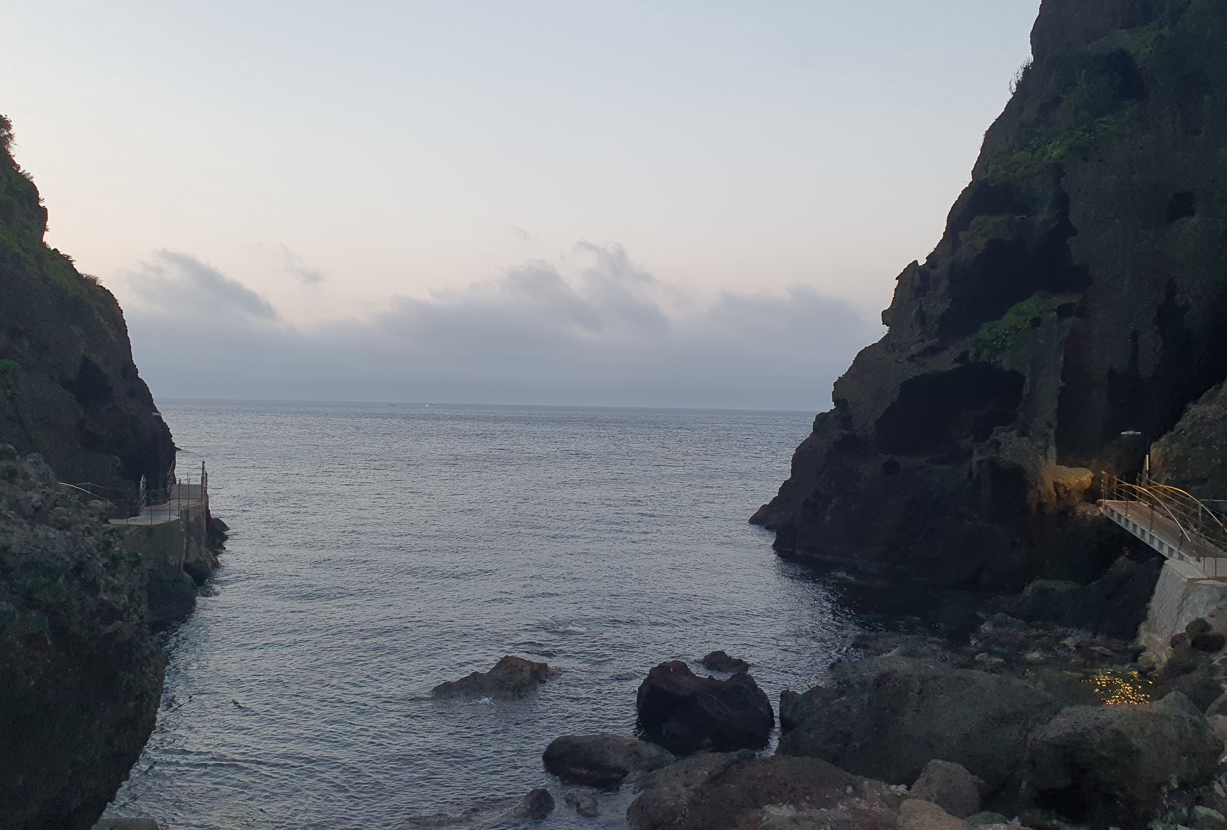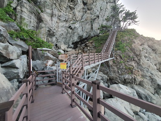 행남 해안산책로는 도동항에서 갈 수 있어요. 도동항에서 저동항 남방파제까지 만들어놨지만, 낙석주의라는 표지판과 함께 800m 정도 가니 중간에 막혀있어서 다시 돌아오긴 했어도 가벼운 산책에는 전혀 문제가 없었답니다.