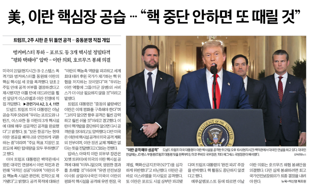 지난 6월 21일, 미국이 이란의 핵시설을 정밀 타격했습니다.
