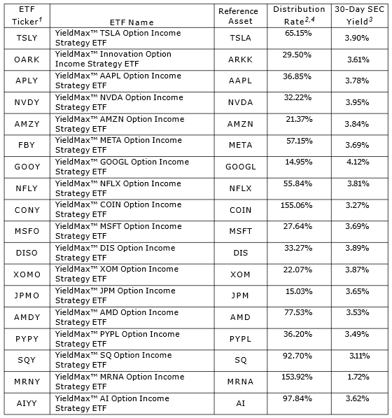2024년 일드맥스(YieldMax) 고배당 ETF 배당락일, 분배금(배당) 지급일정(feat. TSLY, CONY)