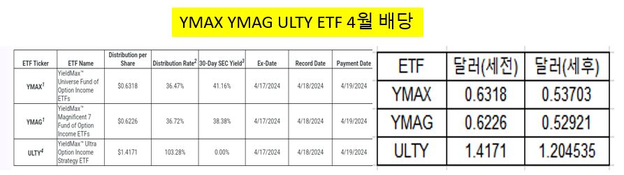 - YMAX, YMAG, ULTY 4월 배당(분배금)