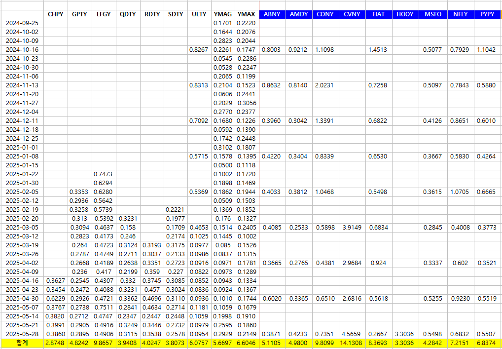 2025년 5월 마지막 일드맥스(YieldMax) ETF 배당(분배금)이 발표되었어요.