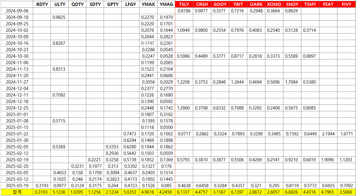 2025년 3월 3주차 일드맥스(YieldMax) ETF 배당(분배금)이 발표되었어요.